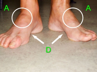 A „ kivájt” lábú egyén erősen kifelé tapossa a cipőit, a széria félcipők a kéregnél feltörik a láb sarkát. A vékony talpú cipőkben a járás fájdalmas.