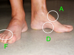 - Az előláb külső oldala (4. és 5. ujj és a metatarsusok) az előláb szintje alatt helyezkedik el („ alácsavarodik.”)