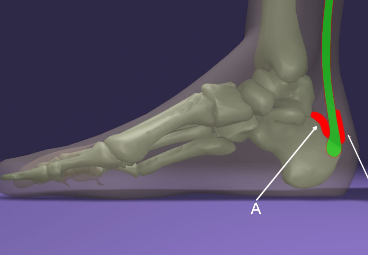 Az Achilles ín előtti bursa (A), a sarokcsont felett tömlő, zacskó formában helyezkedik el. A bursa gyulladásba jöhet, megduzzad, enyhén piros színűvé és érzékennyé válik az érintett terület. A hátsó bursa (B) az ín és a bőr között jön létre tartós mechanikai inger hatására, ez megduzzadhat, a piros dudor jól látható, tapintható, amely hely fájdalmas. Ha a duzzanat tartósan fennáll, a bursa megkeményedhet.